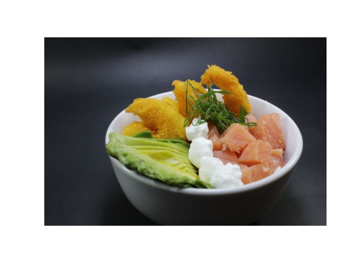 Gohan Camarón Y Salmón (Cebollín, Queso Crema, Palta Y Sésamo)