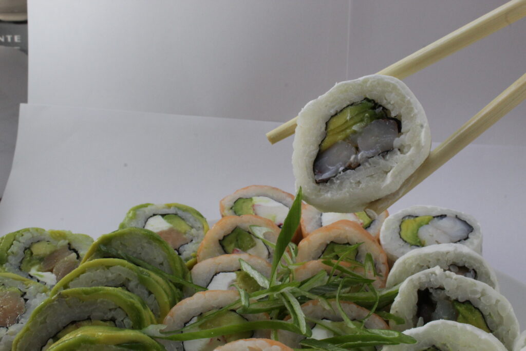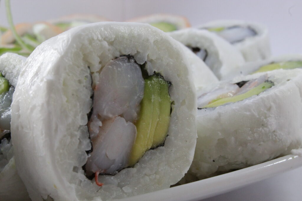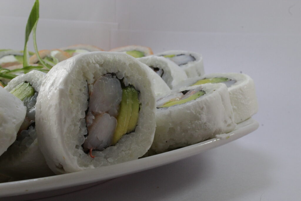 Champiñón Apanado, Cebollín y Palta. envuelto en queso crema